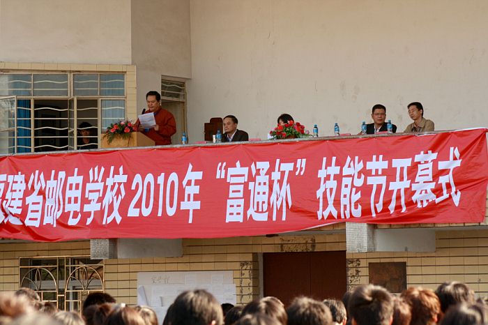 11月12日下午,我校2010年“富通杯”技能節(jié)開幕式在學(xué)校操場舉行。王福貴校長、劉蘇軍副校長、謝福仁副校長、教務(wù)科馮力科長在主席臺上就座,福建省富通信息產(chǎn)業(yè)有限公司人事部肖威經(jīng)理應(yīng)邀出席開幕式。開幕儀式由劉蘇軍副校長主持,全校師生近3000人參加。