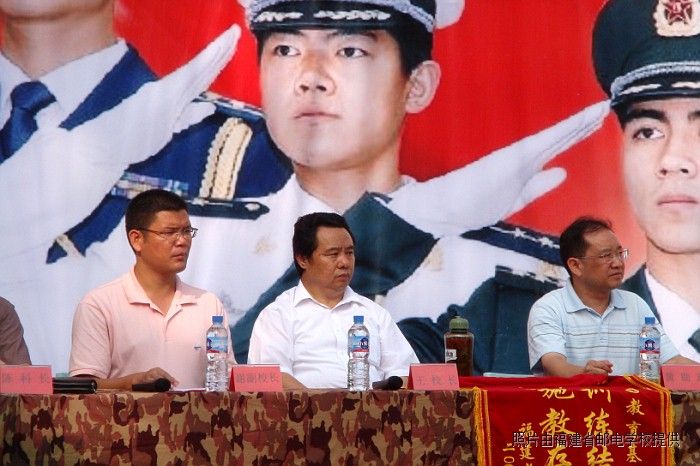 學校黨委書記兼校長王福貴同志、學校黨委副書記兼副校長謝福仁同志和招生就業(yè)辦主任陳抒勇、學生科科長容月玲、學生科副科長蔡愛芳、學生科副科長劉楊泉等學校領(lǐng)導以及學校軍訓負責老師陳盛、2009級班主任老師和科博園嚴宗務校長、科博園作訓部部長邱偉華等出席了大會。