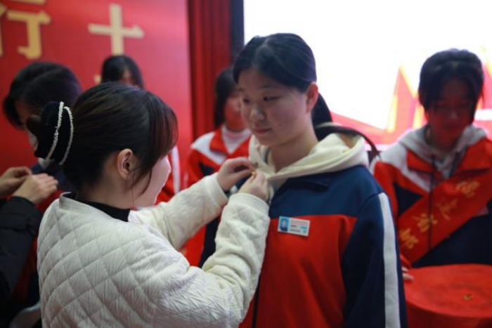 22軟件五專鄭文龍、22電商五專陳星瑤,分別代表新、老團(tuán)員發(fā)言。