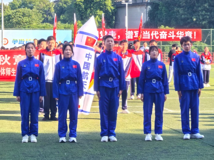 鼓樂(lè)鏗鏘,歡聲雷動(dòng)。伴著雄壯的《運(yùn)動(dòng)員進(jìn)行曲》,紅旗方隊(duì)、花束方隊(duì)、學(xué)生方隊(duì)、裁判員方隊(duì)、國(guó)旗方隊(duì),高喊響亮的口號(hào),以各具特色的方式入場(chǎng)——他們有的用紅綢帶、紅傘、紅方塊拼接出國(guó)旗、五角星圖案,抒發(fā)愛(ài)國(guó)情懷;有的致敬神舟十五號(hào)航天員,彰顯“載人航天精神”;有的穿越古今,鏡像對(duì)話,演繹物流事業(yè)的演變;有的扮演翩翩古風(fēng)少年,舞出鴻鵠之志……朝氣蓬勃,勝過(guò)秋陽(yáng)。