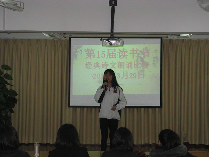 為引領(lǐng)同學(xué)們熱愛經(jīng)典,弘揚(yáng)中華優(yōu)秀傳統(tǒng)文化,我校于3月27日和3月29日晚自習(xí)在圖書館閱覽室舉辦了第十五屆讀書節(jié)經(jīng)典詩文朗誦比賽,共有四十名選手參加了比賽。