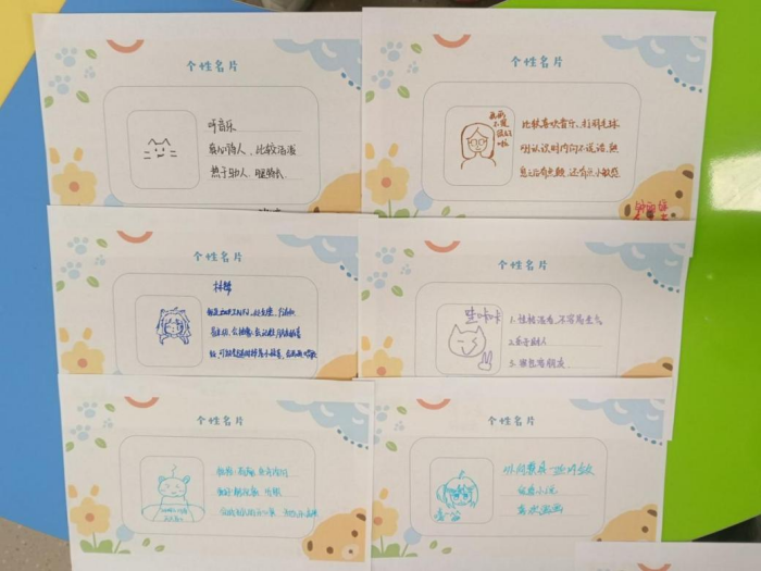 活動伊始,黃老師通過“找朋友”活動,營造了輕松愉快的氛圍,引出人際關(guān)系的主題。隨后,在“明確朋友特質(zhì)”環(huán)節(jié),同學們針對“想和具有哪些特點的人成為朋友”這一問題各抒己見,并設(shè)計屬于自己的個性名片。