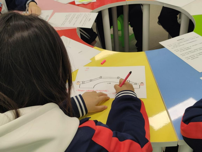 最后,同學(xué)們共同繪制“心橋”,梳理出溝通中的重要要素,并在橋上寫下自己未來的溝通承諾。這一環(huán)節(jié)幫助學(xué)生強化了所學(xué)內(nèi)容,還進一步增強了團隊協(xié)作和人際互動的體驗。