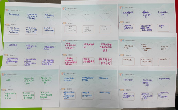同學(xué)們需要在30秒內(nèi)盡可能多地鼓掌,并記錄下自己的鼓掌次數(shù)。通過(guò)三輪挑戰(zhàn),大家逐漸提高了目標(biāo),并嘗試使用新的方法來(lái)突破自我。這個(gè)簡(jiǎn)單的活動(dòng)讓同學(xué)們深刻體會(huì)到目標(biāo)設(shè)定和方法的重要性。李老師還借此機(jī)會(huì)介紹了SMART原則,幫助大家學(xué)會(huì)如何設(shè)定具體、可衡量、可實(shí)現(xiàn)、相關(guān)性強(qiáng)且有時(shí)間限制的目標(biāo),為新學(xué)期的學(xué)習(xí)生活提供了科學(xué)的指導(dǎo)。