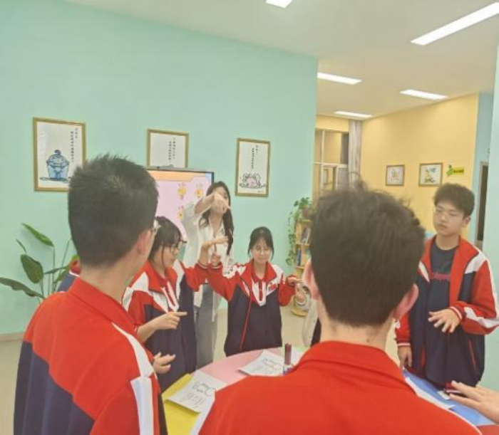 通過觀看科普視頻,同學(xué)們了解到情緒ABC理論的核心——事件(A)本身不直接引發(fā)情緒(C),中間的信念(B)才是關(guān)鍵。針對如何處理非合理信念這個(gè)問題,老師帶領(lǐng)同學(xué)們了解了ABC五步法,并分組演練解決實(shí)際問題。