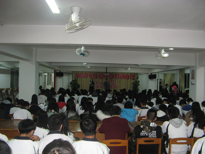 文藝晚會(huì)以讀書(shū)為主題,歷時(shí)90分鐘,有朗誦、相聲、小品、獨(dú)唱、合唱、舞蹈、架子鼓演奏等十七個(gè)節(jié)目。晚會(huì)在一段震撼人心的機(jī)械舞中拉開(kāi)序幕,隨后,翁福山、謝彬艷傾情演唱讀書(shū)社社歌《校園的早晨》,將全場(chǎng)氣氛點(diǎn)燃。演員們陸續(xù)登場(chǎng),在詩(shī)朗誦《致橡樹(shù)》、《再別康橋》、《青春的誓言》表演中,演員們或娓婉深情、或慷慨激昂,讓觀眾感受到了經(jīng)典的魅力;在歌伴舞《故夢(mèng)》、《殘酷月光》表演中,演員們歌聲動(dòng)情、舞姿優(yōu)美,叫人陶醉;在相聲《上課》、小品《校園圖書(shū)館》表演中,演員們本色演繹,展現(xiàn)了多彩的校園生活。最后讀書(shū)社成員一起上臺(tái)齊聲高唱《我相信》,唱出了當(dāng)代中職學(xué)生的心聲,對(duì)讀書(shū)的熱愛(ài)、對(duì)理想的追求、對(duì)未來(lái)的自信!