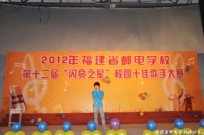 10月26日下午,我校禮堂張燈結(jié)彩,座無(wú)虛席,由學(xué)生科、團(tuán)委舉辦的2012年第十二屆“閃亮之星”校園十佳歌手大賽總決賽激情唱響。學(xué)生科蔡愛(ài)芳副科長(zhǎng)、團(tuán)委書(shū)記張仁美老師、林志團(tuán)、王晨、張?jiān)、鄭佳麗、林楠、陳靜、林真霞等9位老師應(yīng)邀擔(dān)任評(píng)委。本屆十佳歌手大賽由通信1102班周鵬和通信1205班李文琴兩位同學(xué)擔(dān)任主持。校領(lǐng)導(dǎo)對(duì)本次比賽十分重視,校長(zhǎng)、黨委書(shū)記王福貴老師,副校長(zhǎng)、黨委副書(shū)記謝福仁老師親臨現(xiàn)場(chǎng)指導(dǎo)。