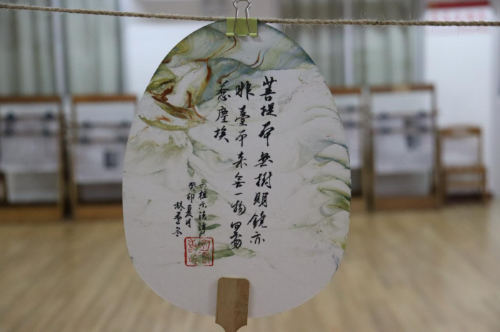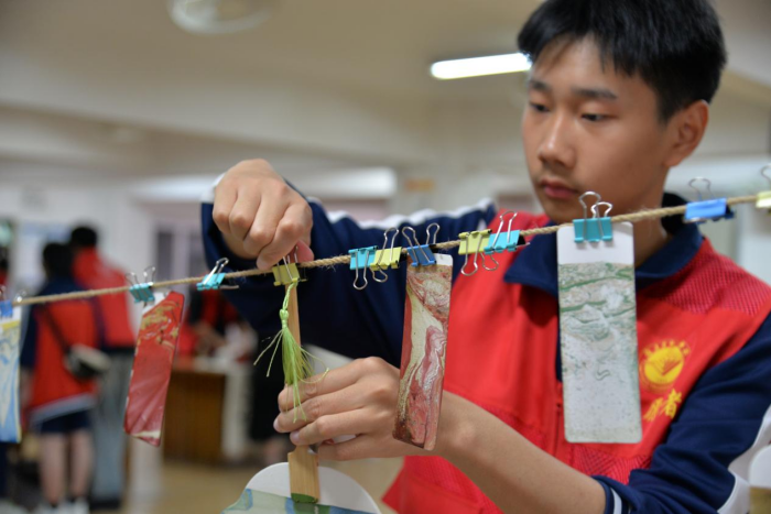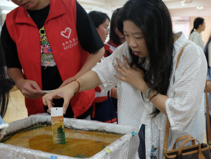 不少師生被吸引前來體驗(yàn),三五成群手持各色漆扇、書簽進(jìn)行拍照留念。在實(shí)踐過程中,有同學(xué)分享到,“我經(jīng)常在網(wǎng)上看見做飄漆扇的制作視頻,沒想到學(xué)校竟然舉辦這樣的活動(dòng),有機(jī)會(huì)親自動(dòng)手體驗(yàn),制作過程也像開盲盒一樣充滿隨機(jī)性和趣味性,我太開心啦,讓我充分感受到傳統(tǒng)技藝和非遺藝術(shù)的魅力!”也有同學(xué)希望繼續(xù)學(xué)習(xí)探究漆藝文化,希望這門非遺技藝不斷傳承發(fā)揚(yáng)。