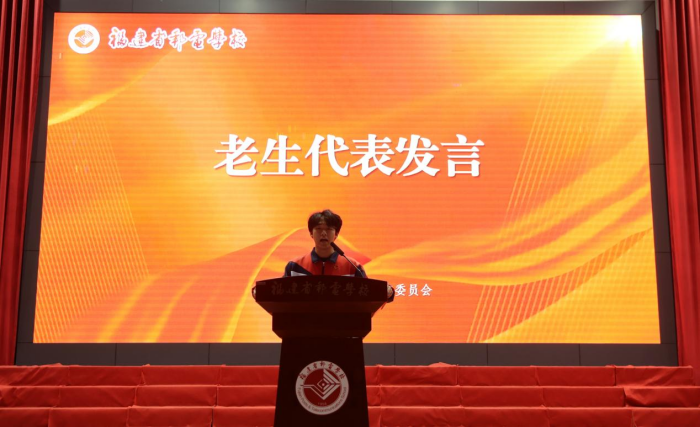 老生代表組織部22物聯(lián)網(wǎng)1班楊萬權(quán)發(fā)言,他表示研學(xué)實(shí)踐活動(dòng)是一次非常寶貴的學(xué)習(xí)機(jī)會,可以走出課堂,親身參與到各種體驗(yàn)與學(xué)習(xí)活動(dòng)中,希望同學(xué)們一起加油,朝著甘于奉獻(xiàn)、敢于擔(dān)當(dāng)、善于協(xié)作、勇挑重?fù)?dān)的福郵青年榜樣努力奮斗!