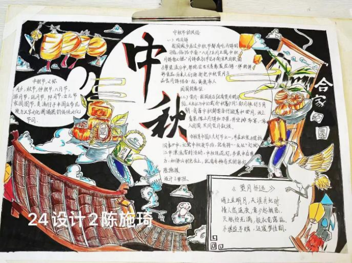彩筆繪團圓,畫卷展中秋。同學們廣泛收集中秋節(jié)的相關(guān)素材,用心繪制一幅幅中秋主題手抄報。從皎潔的明月、飄香的桂花,到團圓的家宴、歡樂的燈籠,每一幅作品都凝聚著同學們對中秋佳節(jié)的美好祝愿與無限創(chuàng)意,讓傳統(tǒng)文化的藝術(shù)魅力在色彩斑斕中綻放。