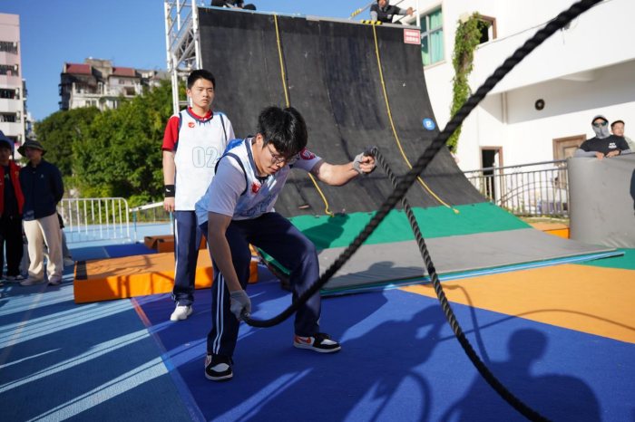 據(jù)悉,本次比賽為團(tuán)體賽,省直機(jī)關(guān)組比賽項(xiàng)目設(shè)11項(xiàng),分別為:牽索越坡、負(fù)重前行、匍匐爬行、空中棧道、引體向上(男)+壺鈴甩擺(女)、旱地雪橇、沙袋過桿、接力跳箱、翻運(yùn)輪胎(男)+風(fēng)阻劃船(女)、力量戰(zhàn)繩、速度沖刺。中職組項(xiàng)目設(shè)9項(xiàng),分別為:踏步高階、翻山越嶺、交替云梯、平衡獨(dú)木、擺浪吊環(huán)、匍匐前行、斜體向上、力量戰(zhàn)繩、終點(diǎn)高臺(tái)。參賽選手需同時(shí)出發(fā),每個(gè)項(xiàng)目必須集體都完成才能進(jìn)行下個(gè)參賽項(xiàng)目,直至最后需以團(tuán)隊(duì)同時(shí)按下終點(diǎn)處計(jì)時(shí)按鈕及裁判停表后方為該隊(duì)全程完賽。