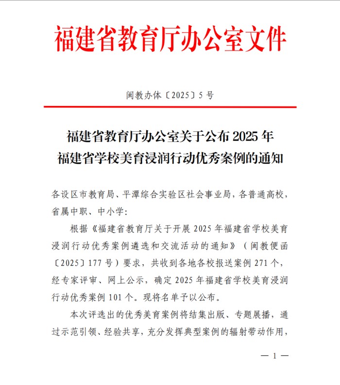 我校美育案例榮獲2025年福建省學(xué)校美育浸潤(rùn)行動(dòng)優(yōu)秀案例