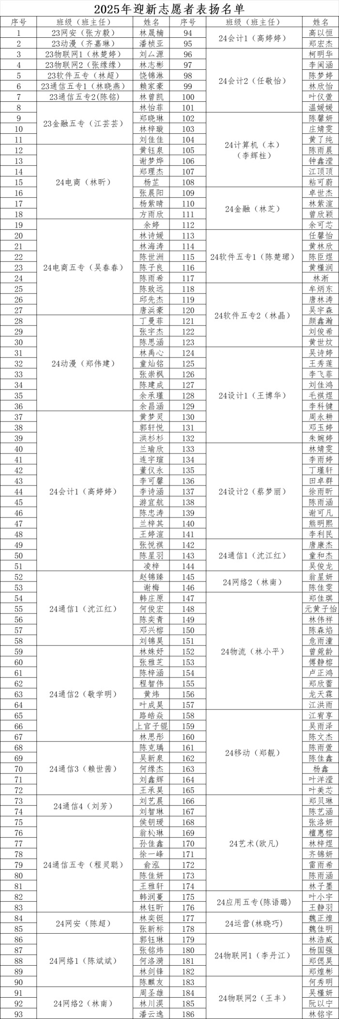 附件:2025年迎新志愿者表?yè)P(yáng)名單
