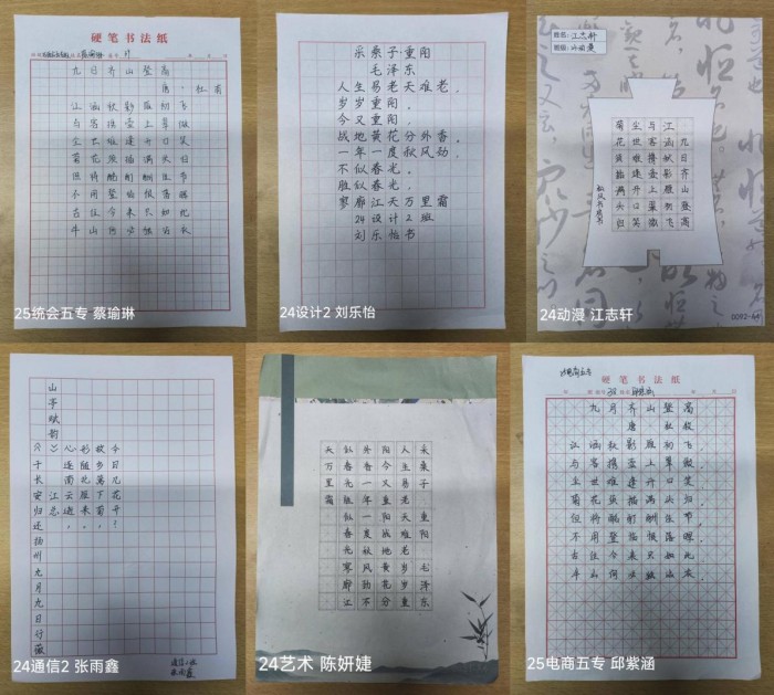 筆墨承韻,詩(shī)頌重陽(yáng)。通信技術(shù)專業(yè)教學(xué)部學(xué)子以筆為媒,書寫重陽(yáng)節(jié)經(jīng)典詩(shī)詞,在筆墨間傳承傳統(tǒng)文化。