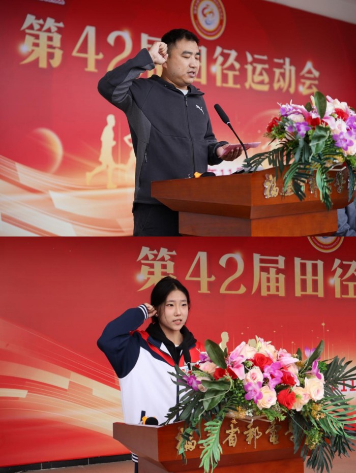隨后,運動員代表24電商班馬詩雨同學與裁判員代表唐祖耀老師分別宣誓,承諾將以拼搏姿態(tài)全力以赴、以公平公正堅守賽場準則。