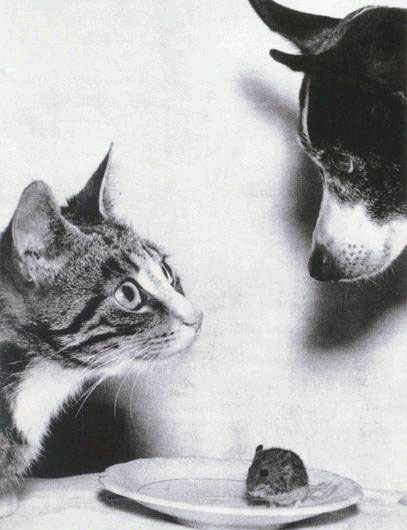 貓米Terry和狗Tomson正在決定誰(shuí)先下嘴。金花鼠Jim萬(wàn)萬(wàn)沒(méi)有想到,主人剛離開(kāi)家自己就要變成這兩個(gè)“朋友”的晚餐。它們?nèi)齻(gè)都是Mark家喂養(yǎng)的寵物。在主人面前,它們似乎是親密無(wú)間的伙伴。
