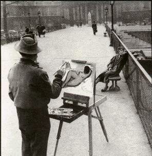畫家為他穿著大衣的女友畫一幅裸畫,這是在塞納河畔由攝影師精心安排的一個(gè)“圈套”,最初的目的不過(guò)是想看看周圍的人對(duì)此有何反應(yīng)。