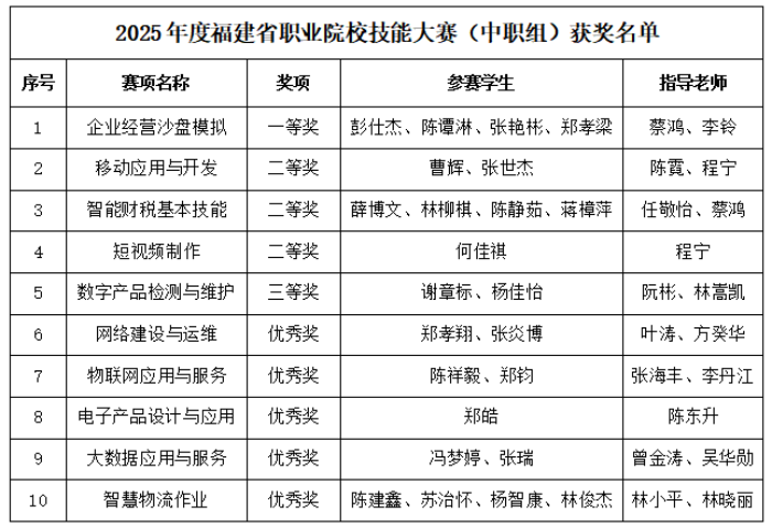 喜報(bào)|我校在2025年度福建省職業(yè)院校技能大賽中喜獲佳績(jī)