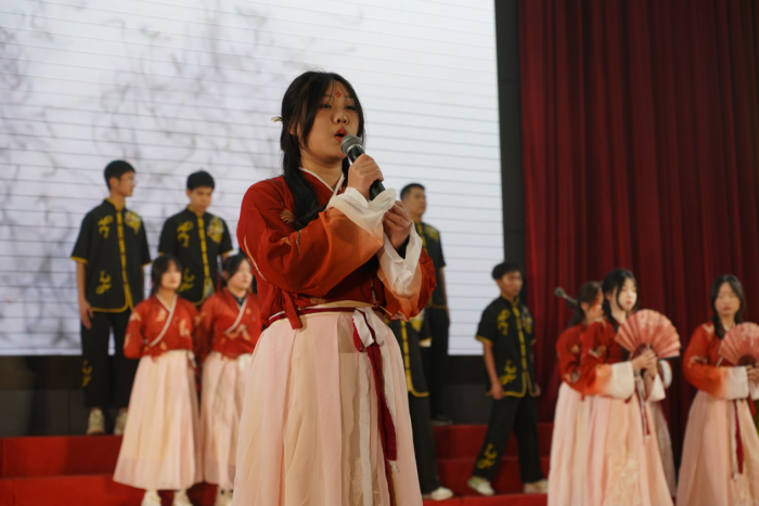 第二篇章經(jīng)典誦讀優(yōu)秀作品展演中,同學(xué)們依次登臺展演《觀滄!贰抖谈栊小贰锻馈返裙旁娢,觀眾在品讀紅色經(jīng)典的同時,賡續(xù)了民族精神。