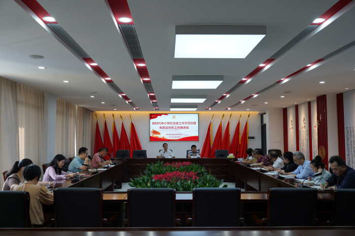 為深入貫徹落實(shí)新時(shí)代黨的建設(shè)總要求,持續(xù)推進(jìn)建立中小學(xué)校黨組織領(lǐng)導(dǎo)的校長(zhǎng)負(fù)責(zé)制,不斷推動(dòng)學(xué)校黨建工作全面進(jìn)步全面過(guò)硬,近日,學(xué)校召開新時(shí)代中小學(xué)校黨建示范創(chuàng)建和質(zhì)量創(chuàng)優(yōu)工作(以下簡(jiǎn)稱黨建“雙創(chuàng)”工作)推進(jìn)會(huì)。校黨委書記包曉暉,校黨委副書記、紀(jì)委書記吳錦華出席會(huì)議,相關(guān)科室負(fù)責(zé)人、各黨支部書記參加會(huì)議。