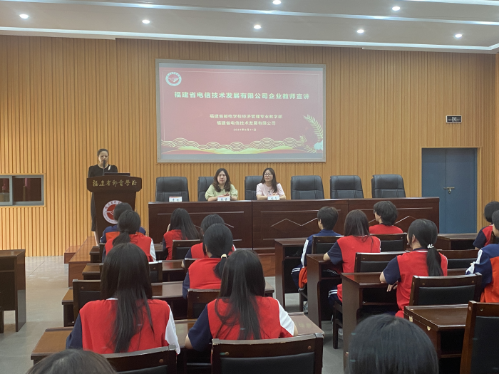 為進(jìn)一步提升我校產(chǎn)教融合、校企合作水平,推進(jìn)和規(guī)范校企合作項(xiàng)目建設(shè),9月11日上午,福建省電信技術(shù)發(fā)展有限公司在我校學(xué)術(shù)報(bào)告廳順利舉辦企業(yè)宣講會(huì)。中國(guó)電信福建分公司10000號(hào)客服中心集團(tuán)內(nèi)訓(xùn)師林麗、林菁,經(jīng)濟(jì)管理專業(yè)教學(xué)部副主任李鈴、市場(chǎng)營(yíng)銷教研組組長(zhǎng)鄭芳舒,以及22運(yùn)營(yíng)1班、22運(yùn)營(yíng)2班兩個(gè)訂單班共計(jì)80名學(xué)生參加了本次宣講會(huì)。