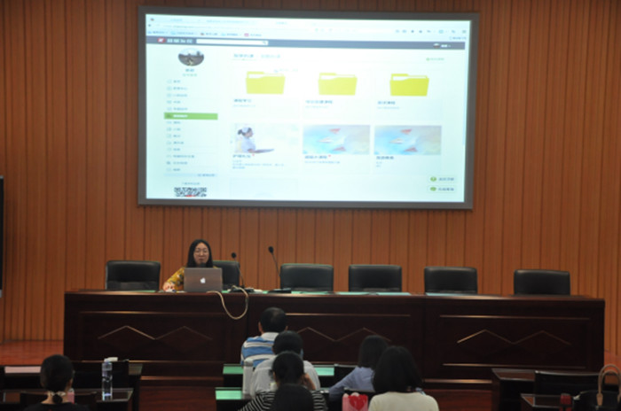 緊隨其后上臺的姜穎培訓(xùn)師則重點(diǎn)介紹了如何在超星集團(tuán)的泛雅平臺上建立課程、操作軟件以進(jìn)行網(wǎng)絡(luò)授課。