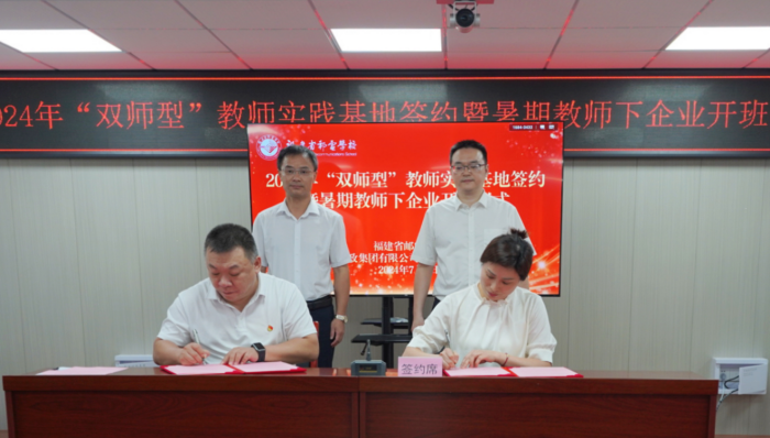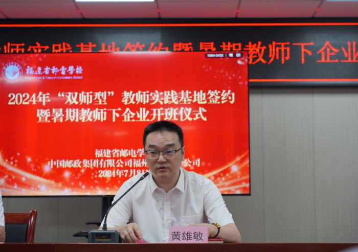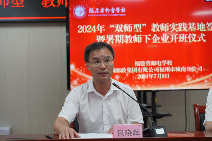 7月8日上午,我校舉行2024年“雙師型”教師實(shí)踐基地簽約暨暑期教師企業(yè)實(shí)踐開班儀式。福建省郵電學(xué)校黨委書記包曉暉、中國郵政集團(tuán)有限公司福州市城南分公司總經(jīng)理黃雄敏、校企雙方有關(guān)部門負(fù)責(zé)人及暑期下企業(yè)教師參加本次活動(dòng)。