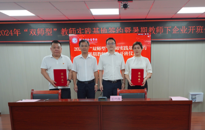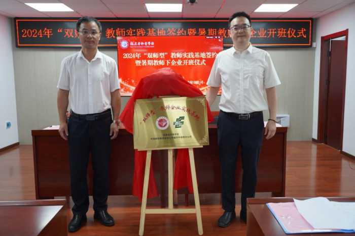 儀式現(xiàn)場(chǎng),校企雙方簽訂了建設(shè)“雙師型”教師企業(yè)實(shí)踐基地協(xié)議書,并進(jìn)行了揭牌儀式。