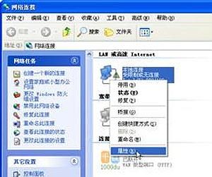 第一步:在系統(tǒng)桌面“網(wǎng)上鄰居”點鼠標右鍵,選擇“屬性”。接下來在“本地連接”上繼續(xù)點鼠標右鍵,選擇“屬性”。