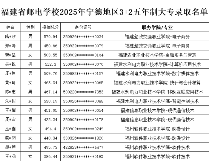 您現(xiàn)在的位置: 首頁(yè) > 學(xué)校信息 > 通知公告通知公告 福建省郵電學(xué)校2025年寧德地區(qū)3+2五年制大專錄取名單 發(fā)布時(shí)間:2025-07-31 //echo ;?> 來(lái)源:招生辦公室點(diǎn)擊: 招生熱線:0591-83573573 學(xué)校地址:福州市倉(cāng)山區(qū)上渡路李厝山60號(hào) 上一篇:福建省郵電學(xué)校2025年龍巖地區(qū)3+2五年制大專錄取名單 下一篇:返回列表