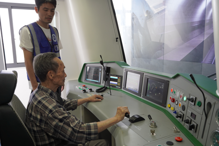 第三階段,工會組織老同志們來到福建船政交通職業(yè)學院軌道交通學院,實地參觀了軌道交通學院專業(yè)群綜合實訓(xùn)基地。通過學院工作人員的介紹,大家詳細了解了我省軌道交通行業(yè)目前的發(fā)展近況,并現(xiàn)場體驗了軌道交通列車模擬駕駛。