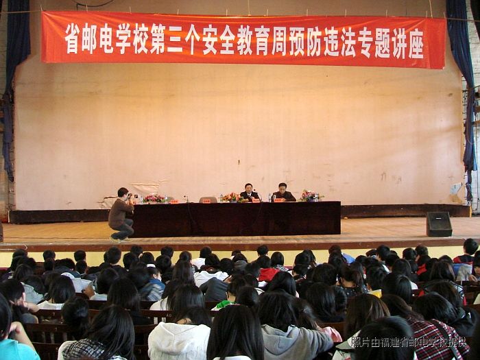 為更好地增強廣大學生的法制觀念與安全知識,進一步促進廣大學生遵紀守法的主動性和自覺性,大力提高安全防范意識和自我保護能力,3月31日下午,在第15個“全國中小學生安全教育日”、第3個“福建省學校安全教育周”來臨之際,我校特邀倉山區(qū)人民檢察院黨組副書記兼副檢察長林祥輝、倉山區(qū)人民檢察院監(jiān)所科副科長鄭君麟、倉山區(qū)人民檢察院技術干部黎艇蒞臨我校宣講法制。林祥輝副檢察長、鄭君麟副科長在禮堂為我校學生作預防違法專題講座。講座分設08、09級兩場,全校學生及班主任近2000人分別參加,我校劉蘇軍副校長應邀在主席臺上就座。講座由學生科容月玲科長主持。