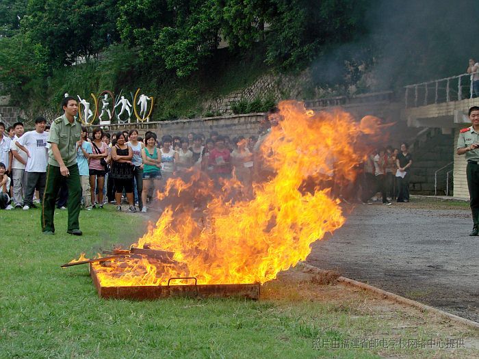 當天下午學校還邀請了倉山消防大隊8位官兵來校舉行消防安全講座和滅火演練。首先,全體08級新生集中在禮堂,由倉山消防大隊鄭教官給大家講火災的危害性、滅火方法、火場如何逃生、發(fā)生火災如何報警、校園防火安全注意事項等內容的防火安全講座。之后在學校操場進行滅火實戰(zhàn)演練,全體08級新生和部分教職工及學校保安都參加,消防官兵進行了示范,師生涌躍參與,針對部分師生的不規(guī)范的動作,鄭教官都作了詳細的講解和更正,使大家都掌握正確的滅火方法,使本次演練取得非常好的效果。
