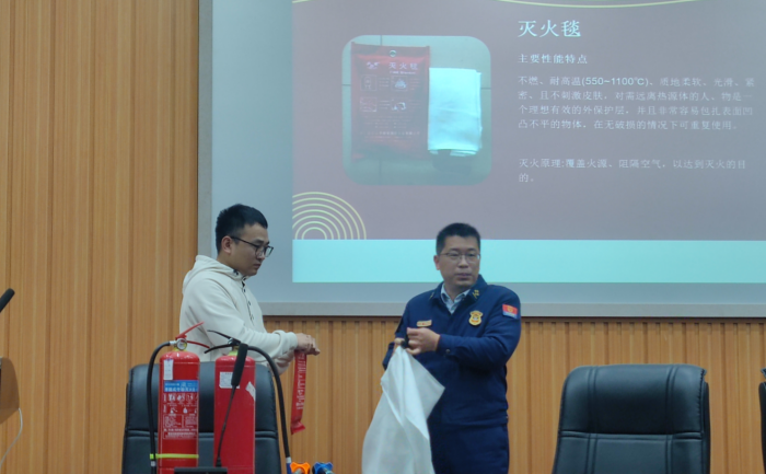 培訓(xùn)會(huì)上,張赟參謀以生動(dòng)的案例和豐富的實(shí)踐經(jīng)驗(yàn),深入淺出地講解了火災(zāi)的危害性、預(yù)防措施以及火災(zāi)應(yīng)對(duì)方法。他詳細(xì)介紹了室內(nèi)消火栓、滅火毯和滅火器等常見消防器材的使用方法,讓師生們對(duì)消防器材使用和消防安全有了更加深入的了解。同時(shí),張參謀還著重強(qiáng)調(diào)了火災(zāi)中的正確逃生技巧,讓師生們掌握在火災(zāi)中自救互救的基本技能。講座現(xiàn)場氛圍積極而熱烈,體現(xiàn)了全校師生對(duì)消防安全的高度重視。