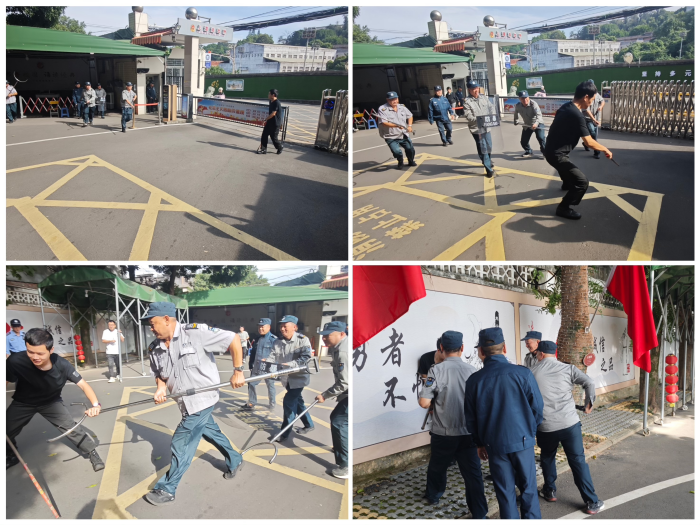 演練過程中,一名“暴恐分子”手持兇器試圖闖入校園。我校安保人員發(fā)現(xiàn)后,立即啟動應(yīng)急預(yù)案,迅速按下“一鍵式報警器”報警,其余安保人員使用防暴器械進行攔截,并及時上報領(lǐng)導(dǎo)。接到報警后,派出所民警迅速趕到現(xiàn)場,與學(xué)校安保人員合力將“暴恐分子”成功制服,及時消除了隱患。整個演練過程環(huán)節(jié)緊湊,組織有序,處置迅速規(guī)范,達到了預(yù)期效果。