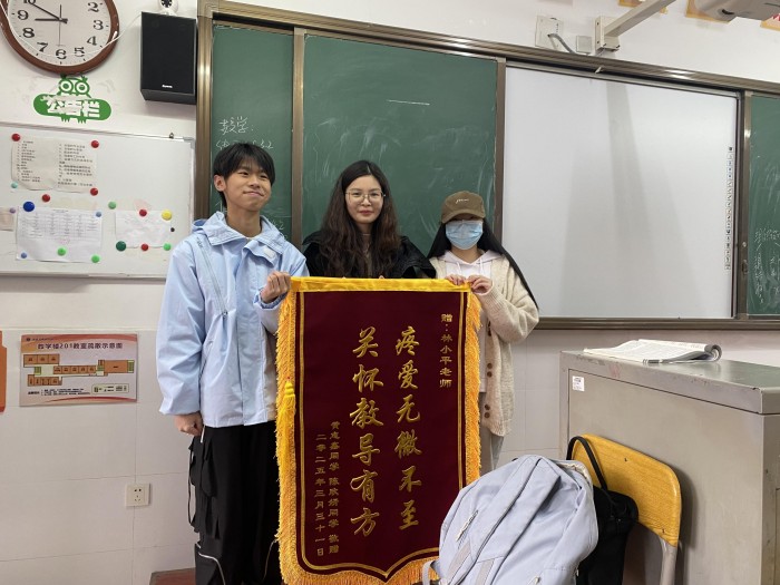 王老師自入職起連續(xù)擔(dān)任班主任,既是紀(jì)律規(guī)則的守護(hù)者,也是學(xué)生心靈的傾聽者。利用量化考核管理和《學(xué)生手冊(cè)》,在嚴(yán)格管理中傳遞底線意識(shí),又在與學(xué)生平等的對(duì)話中建立信任橋梁。通過(guò)制度化的班級(jí)管理培養(yǎng)學(xué)生的責(zé)任感,借助個(gè)性化的關(guān)懷激發(fā)內(nèi)驅(qū)力,最終實(shí)現(xiàn)紀(jì)律約束與自主成長(zhǎng)的平衡,形成“規(guī)范有序、自信成長(zhǎng)”的班級(jí)生態(tài)。