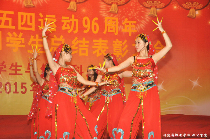 表彰結(jié)束后,校領(lǐng)導還全程和全體同學一起觀看了紀念五四運動96周年文藝匯演。演出在文翔社同學帶來的民族舞《煙花三月》中拉開序幕。表演的節(jié)目內(nèi)容豐富多彩,印度舞、詩歌朗誦、Cosplay走秀、吉它彈唱等多種表演形式交錯登場,最后在國旗班全體成員雄壯激昂的大合唱聲中落下帷幕,全方位、多視角展現(xiàn)了學生的藝術(shù)天賦。學生們出色的表演既展現(xiàn)了他們的藝術(shù)才華和能力,也開啟了他們自身的才智和靈性,是思想的翱翔,感情的抒發(fā),青春的旋律,詩意的飛揚,激發(fā)了師生的愛國熱情,活躍了校園文化生活,為學生展示個性特長提供了廣闊的舞臺,對良好校園文化形成起到了積極的促推作用。