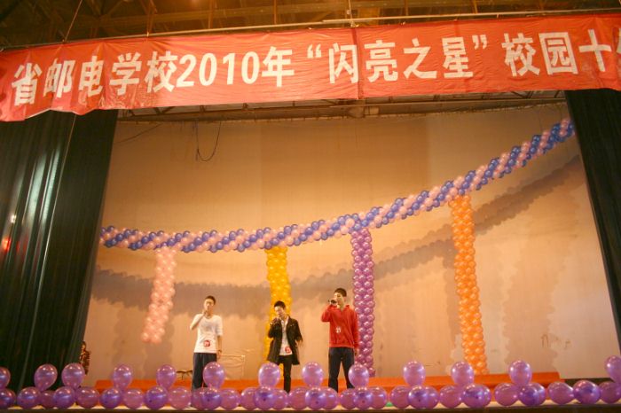 11月17日下午,我校禮堂張燈結(jié)彩,座無(wú)虛席,2010年“閃亮之星”校園十佳歌手大賽激情唱響。校黨委副書(shū)記兼副校長(zhǎng)謝福仁老師,德育教研組高級(jí)講師陳勝武老師,學(xué)生科容月玲科長(zhǎng),團(tuán)委書(shū)記張仁美老師及團(tuán)委委員等共9人應(yīng)邀擔(dān)任評(píng)委。本屆十佳歌手大賽由學(xué)生會(huì)黃露露和光纖0917班劉政宇兩位同學(xué)擔(dān)任主持。