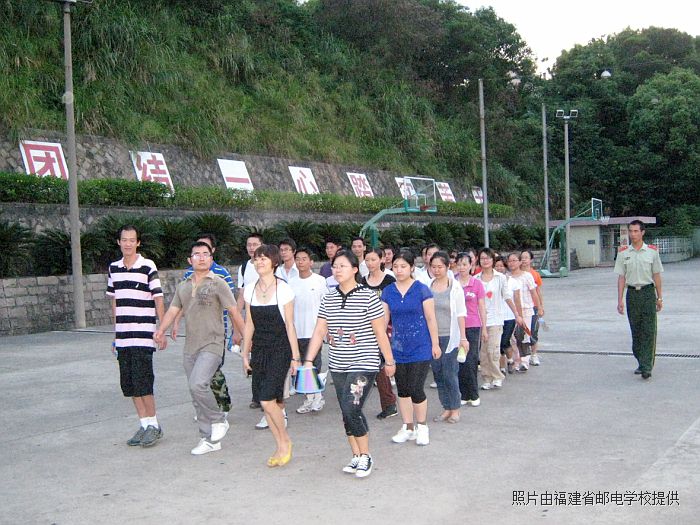 所有老師都勇于超越自我,敢于挑戰(zhàn)酷暑,雖然一個(gè)個(gè)大汗淋漓,雖然食宿條件簡陋,雖然白皙的皮膚漸漸變紅,但同志們士氣依然高昂,動(dòng)作始終整齊有力,紀(jì)律時(shí)刻嚴(yán)明有序。同志們在盡情體驗(yàn)難得的軍旅生活中,也充分展示出郵校年輕一代教師蓬勃向上、奮發(fā)有為的良好風(fēng)貌。經(jīng)過2天的訓(xùn)練,30多個(gè)習(xí)慣于傳授知識的嘴巴,也學(xué)會(huì)了如何喊口令、如何整理隊(duì)列、如何站軍姿,受到基地教官的交口稱贊。