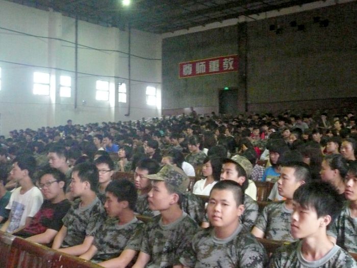 2012年9月23日下午,于學(xué)校禮堂組織全體2012級學(xué)生召開國防教育講座。本次講座由總教官江洪斌主講。在講座開始前,學(xué)生以連隊為小組進行了拉歌比賽。之后,江總教官結(jié)合當前的時事情況,進行了精彩的講演,在他風(fēng)趣幽默的語言引導(dǎo)下,同學(xué)們都聽得津津有味,了解了很多在其他課上所學(xué)不到的知識。這讓同學(xué)們明白一個國家的強大,一個國家掌握自己主權(quán)的能力是極其重要的,正因為這樣,作為新一代建設(shè)者的青少年學(xué)生更應(yīng)該強大。