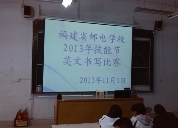 2013年11月1日,福建省郵電學(xué)校2013年專業(yè)技能節(jié)拉開帷幕,由校技能鑒定中心和公共課程教學(xué)部組織的英語書寫比賽于當(dāng)天下午兩點(diǎn)在校新圖一階教室如期舉行。參加此項(xiàng)比賽的有來自全校三個(gè)年段甲乙兩組共134名選手,同學(xué)們摩拳擦掌躍躍欲試,經(jīng)過一個(gè)多小時(shí)的認(rèn)真書寫,交出了令自己和裁判滿意的答卷。通過比賽,展示了同學(xué)們的風(fēng)采,提升了自信。據(jù)英語組老師透露,各班級(jí)英語海報(bào)制作作品也在陸續(xù)上交中,預(yù)祝同學(xué)們?cè)诖隧?xiàng)比賽中再創(chuàng)佳績(jī)。