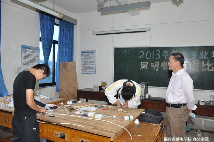 各項技能節(jié)比賽如火如荼舉行的時候,通信技術教學部的技能大賽也于11月1日在電子線路實驗室、電工實驗室、綜合布線實訓室拉開了序幕,當天開展了電子產品裝配與調試、照明電路安裝、橋架安裝等比賽,劉蘇軍副校長、技能鑒定中心主任蘇嶸老師、教務科科長馮力老師,計算機教學部主任陳霓老師觀摩參觀了比賽現(xiàn)場, 比賽過程中各參賽選手們精神抖擻,各施所長,他們精湛的技能、嫻熟的動作獲得了裁判們的一致好評。技能大賽已經成為了檢驗專業(yè)成果和學生綜合素質的一項重要活動,在此預祝選手們都能獲得理想的成績。