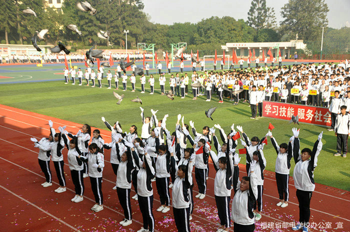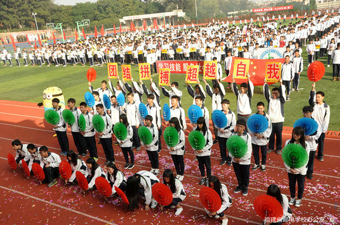 在開幕式上,國旗、會微、標(biāo)語牌,彩旗隊(duì)、鮮花隊(duì)、國旗隊(duì)浩浩蕩蕩進(jìn)入會場,全校53支代表隊(duì)在班主任老師的帶領(lǐng)下,著裝統(tǒng)一、邁著整齊的步伐,精神抖擻、秩序井然地接受了學(xué)校領(lǐng)導(dǎo)和老師的檢閱。師生們個個拿出了絕活精彩亮相,千姿百態(tài),充分展示了郵校師生良好的精神風(fēng)貌,更體現(xiàn)出師生們的聰明才智和創(chuàng)新能力。