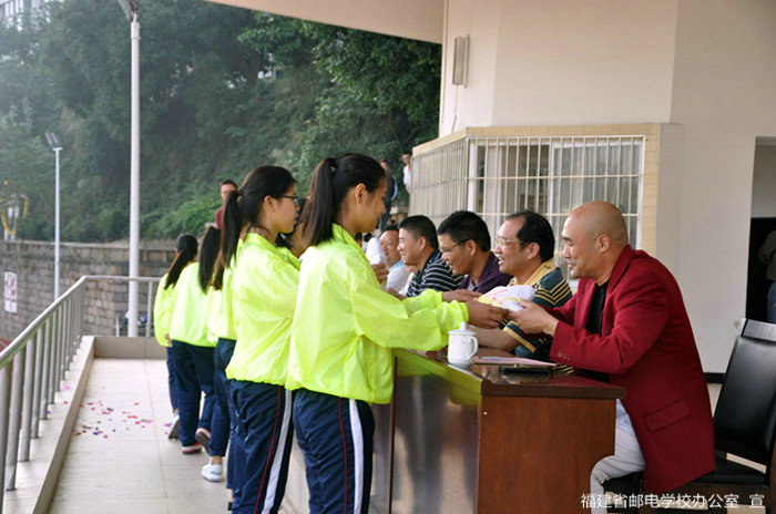 在隆重的升旗儀式之后,劉孔恩校長代表學(xué)校黨政領(lǐng)導(dǎo)班子致開幕詞。他首先對本屆校運(yùn)會的順利召開表示熱烈的祝賀,向?yàn)榛I備本屆運(yùn)動會付出辛勤勞動的全體工作人員表示衷心的感謝和親切的問候!劉校長指出,學(xué)校運(yùn)動會不僅僅是一次體能、技術(shù)、水平的較量,更是一次促進(jìn)同學(xué)們身心健康發(fā)展、培養(yǎng)良好生活情趣以及團(tuán)結(jié)、互助、合作、拼搏等精神品質(zhì)的體育教育活動。它既為廣大郵校學(xué)子提供了一個展示青春風(fēng)采、考驗(yàn)心理體能、挑戰(zhàn)潛能極限的實(shí)踐舞臺,也是對我校體育工作水平與質(zhì)量的一次綜合展演,更是對我校師生精神風(fēng)貌和綜合素質(zhì)的大檢閱。劉校長希望,全體運(yùn)動員牢固樹立“運(yùn)動講安全、比賽講友誼”的思想,公平競爭,奮勇拼搏,展示風(fēng)采,服從裁判;所有裁判員嚴(yán)守規(guī)程、公正裁決,全體工作人員各司其責(zé)、通力合作,所有師生觀眾文明有序、團(tuán)結(jié)互助!同時他也肯定了一年來學(xué)校在基礎(chǔ)設(shè)施建設(shè)和辦學(xué)水平等各方面取得的可喜成績,并希望大家繼續(xù)積極參與到學(xué)校的建設(shè)中,為郵校大家庭的繁榮、和諧、穩(wěn)定貢獻(xiàn)自己的一份力量。