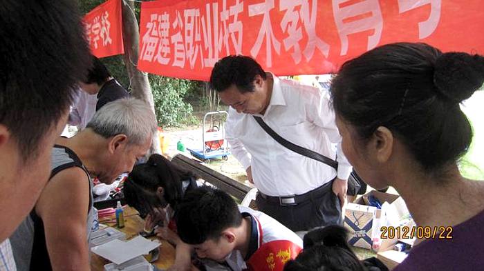 - 2012年9月22日上午,我校通信1105班的黃敏、童廉衛(wèi)、江金芳,通信1107班肖小貴、程佳輝,通信五年專張建龍同學(xué)在蘇嶸科長、徐錫光科長、陳東升老師、鄭佳麗老師的帶領(lǐng)下,到了福州溫泉公園參加福建科普日的宣傳活動(dòng),為市民免費(fèi)手機(jī)貼膜。