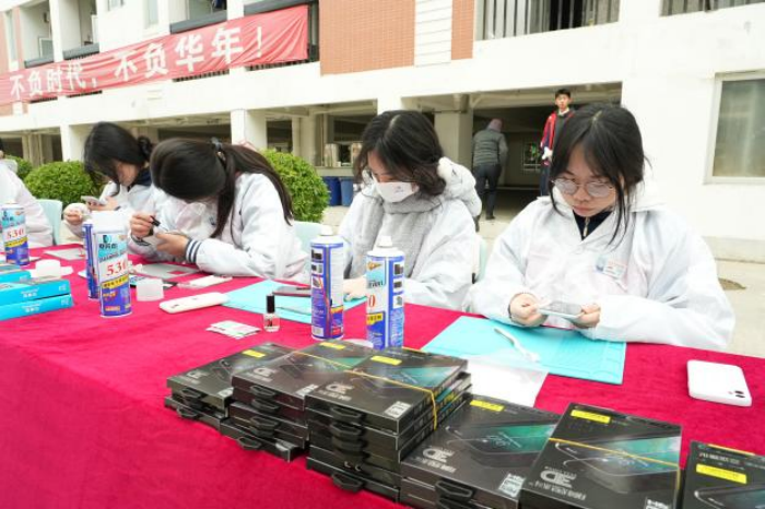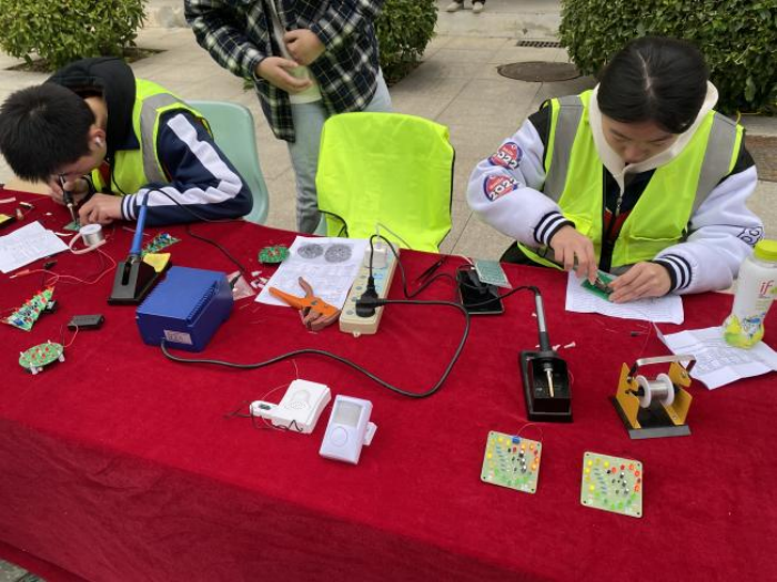 通信技術(shù)專業(yè)教學部展示的項目有光纜接續(xù)技術(shù)展示、模塊鏈路端接技能展示、手機拆裝技能展示、手機貼膜、校慶炫彩燈光秀、炫彩乒乓球時鐘和電子產(chǎn)品制作等。手機拆裝技能讓學生了解手機的內(nèi)部結(jié)構(gòu)和工作原理,掌握手機維修的基本技能。校慶炫彩燈光秀和炫彩乒乓球時鐘項目是基于單片機技術(shù)基礎(chǔ)課程,利用創(chuàng)客課程開發(fā)框架和學習模式,結(jié)合信息化TinkerCAD仿真平臺、設(shè)計制作的個性化實驗板件,可以在LED屏顯示校標、歡迎語和控制燈光進行時間顯示等功能,培養(yǎng)學生的想象力、創(chuàng)造力以及解決問題的能力,拓展學生思路、培養(yǎng)創(chuàng)新精神。