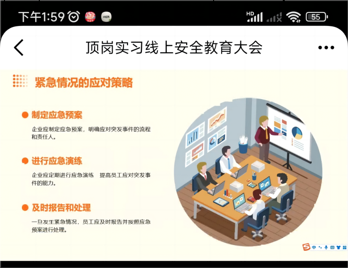 本次主題班會采取線上線下相結合的方式。主題班會課上,各班主任針對頂崗實習期間的交通安全、飲食安全、人身財產(chǎn)安全、防范電信詐騙、預防網(wǎng)絡兼職詐騙、實習相關法律法規(guī)等方面進行宣講,并通過典型案例向同學們介紹了安全防范要點以及應對突發(fā)事件的正確方法和措施。班主任還要求同學們在實習期間不僅要與家長保持信息暢通,還要與學校老師保持聯(lián)系,定期主動向實習指導老師匯報實習情況。此外,班主任還特別強調(diào)實習期間的心理健康,并為同學們提供了應對工作壓力、調(diào)整心態(tài)等方面的指導,幫助他們更好地適應實習生活和工作。