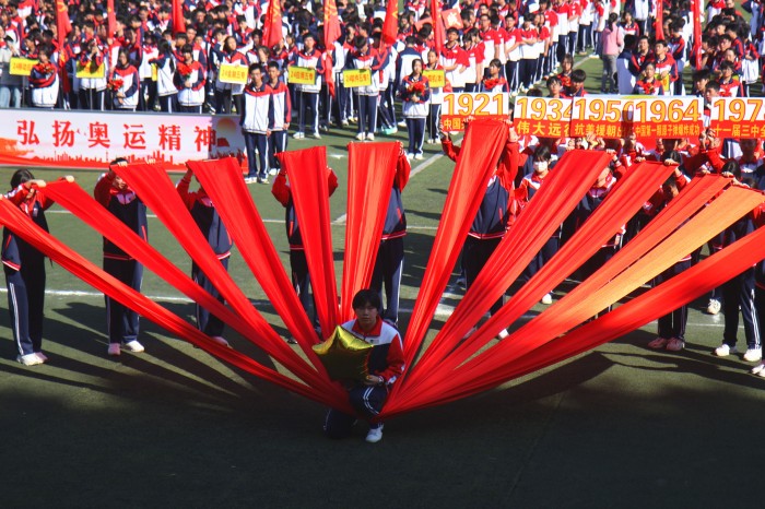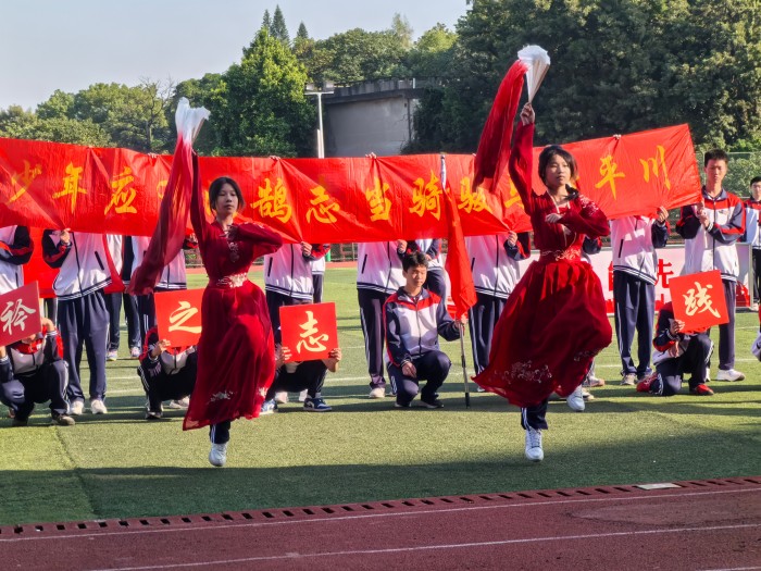 鼓樂鏗鏘,歡聲雷動。伴著雄壯的《運動員進行曲》,紅旗方隊、花束方隊、學生方隊、裁判員方隊、國旗方隊,高喊響亮的口號,以各具特色的方式入場——他們有的用紅綢帶、紅傘、紅方塊拼接出國旗、五角星圖案,抒發(fā)愛國情懷;有的致敬神舟十五號航天員,彰顯“載人航天精神”;有的穿越古今,鏡像對話,演繹物流事業(yè)的演變;有的扮演翩翩古風少年,舞出鴻鵠之志……朝氣蓬勃,勝過秋陽。