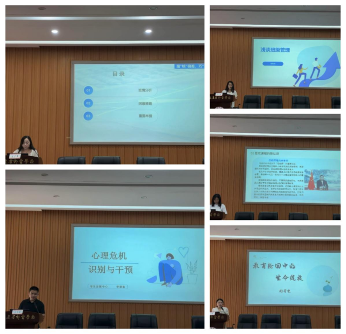 學(xué)生與保衛(wèi)科科長張仁美以“鑄魂育人守初心,五育融合譜新篇”為主題,圍繞“強心、安心、舒心、暖心、歡心”的“五心工程”向與會者匯報本學(xué)期學(xué)生思想政治教育及班主任工作情況。