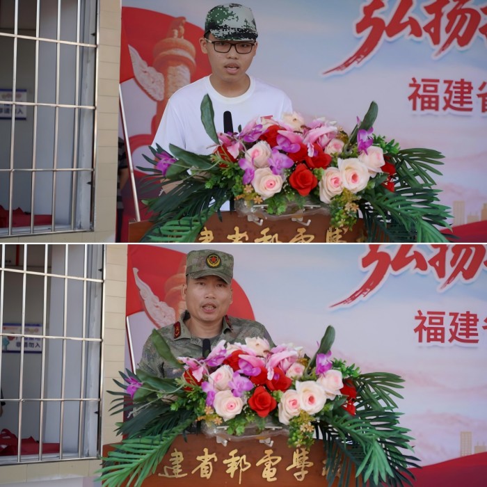 新生代表25計算機(jī)(本)陳文杰同學(xué)上臺發(fā)言,表達(dá)了全體2025級新生投身國防教育節(jié),增強(qiáng)國防觀念,錘煉自我的堅定決心。